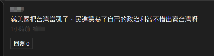 “就美国把台湾当‘凯子’,民进党为了自己的政治利益不惜出卖台湾呀”。