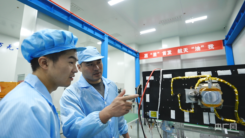 科研人员正在测试卫星(央广网记者 李晓晓 摄)