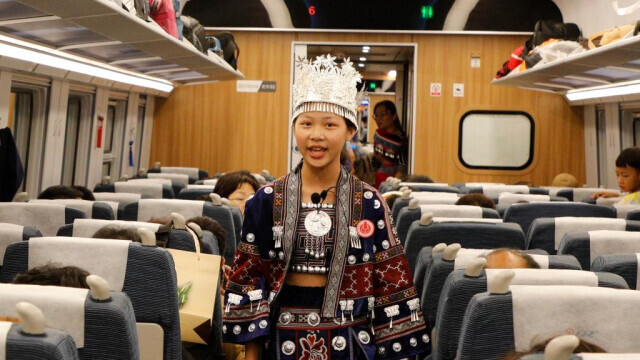 ▲金秋九月,云南宁洱哈尼族彝族自治县的青少年宣讲团,在中老铁路宁洱至昆明路段宣讲民族团结誓词碑故事。新华社发