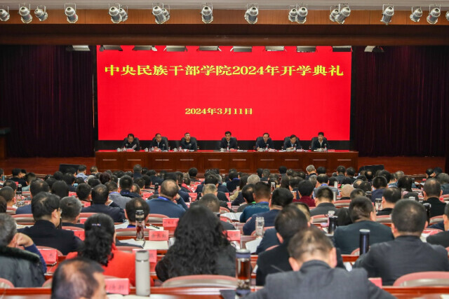 ▲3月11日,中央民族干部学院2024年开学典礼暨全国民委系统铸牢中华民族共同体意识轮训班(第一期)举行开班式。来源:中央民族干部学院