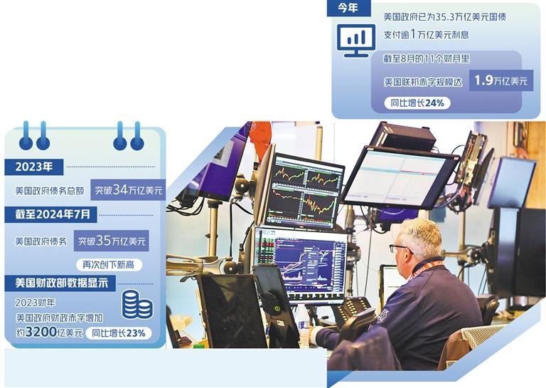 20世纪80年代以来,美债规模急剧上涨。1990年美国政府债务总额约为3.2万亿美元,2000年这一数字增长至约5.62万亿美元,2010年增至约13.56万亿美元,2020年增至约27.74万亿美元,2023年美国政府债务总额突破34万亿美元。截至2024年7月,美国政府债务突破35万亿美元,再次创下新高。虽然美联储降息能够缓解部分偿债压力,但美债规模扩张势头恐怕难以控制,将成为笼罩在全球经济上空的阴影。