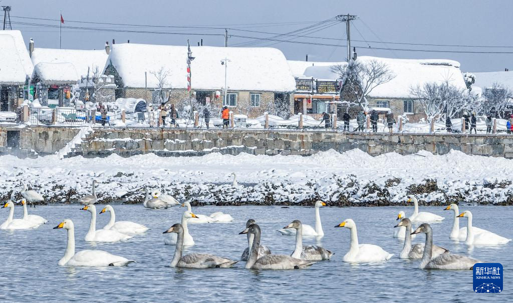 雪后的山东省荣成市烟墩角村景色(2023年12月17日摄)。新华社发(李信君 摄)