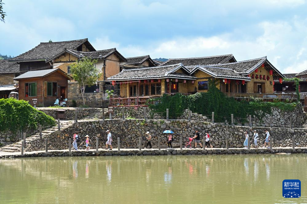 游客在福建省漳州市南靖县书洋镇官洋村游览(2021年8月17日摄)。新华社记者 宋为伟 摄