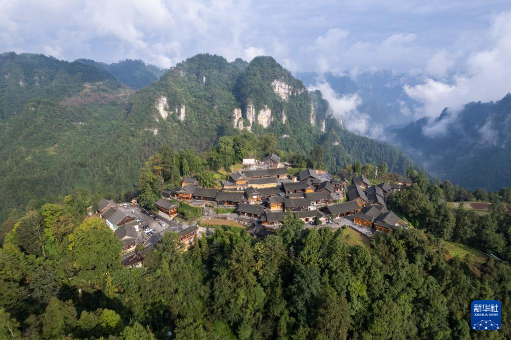 这是2023年10月10日拍摄的湖南省湘西土家族苗族自治州花垣县十八洞村景色(无人机照片)。新华社记者 陈思汗 摄
