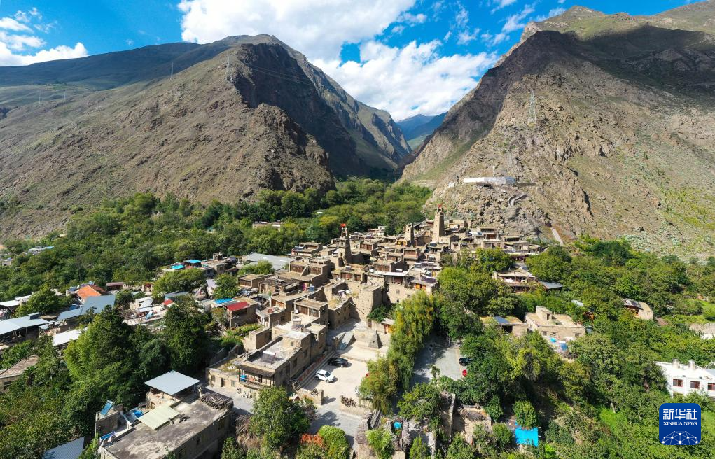 四川省阿坝藏族羌族自治州理县桃坪村桃坪羌寨景色(2023年9月13日摄,无人机照片)。新华社记者 王曦 摄