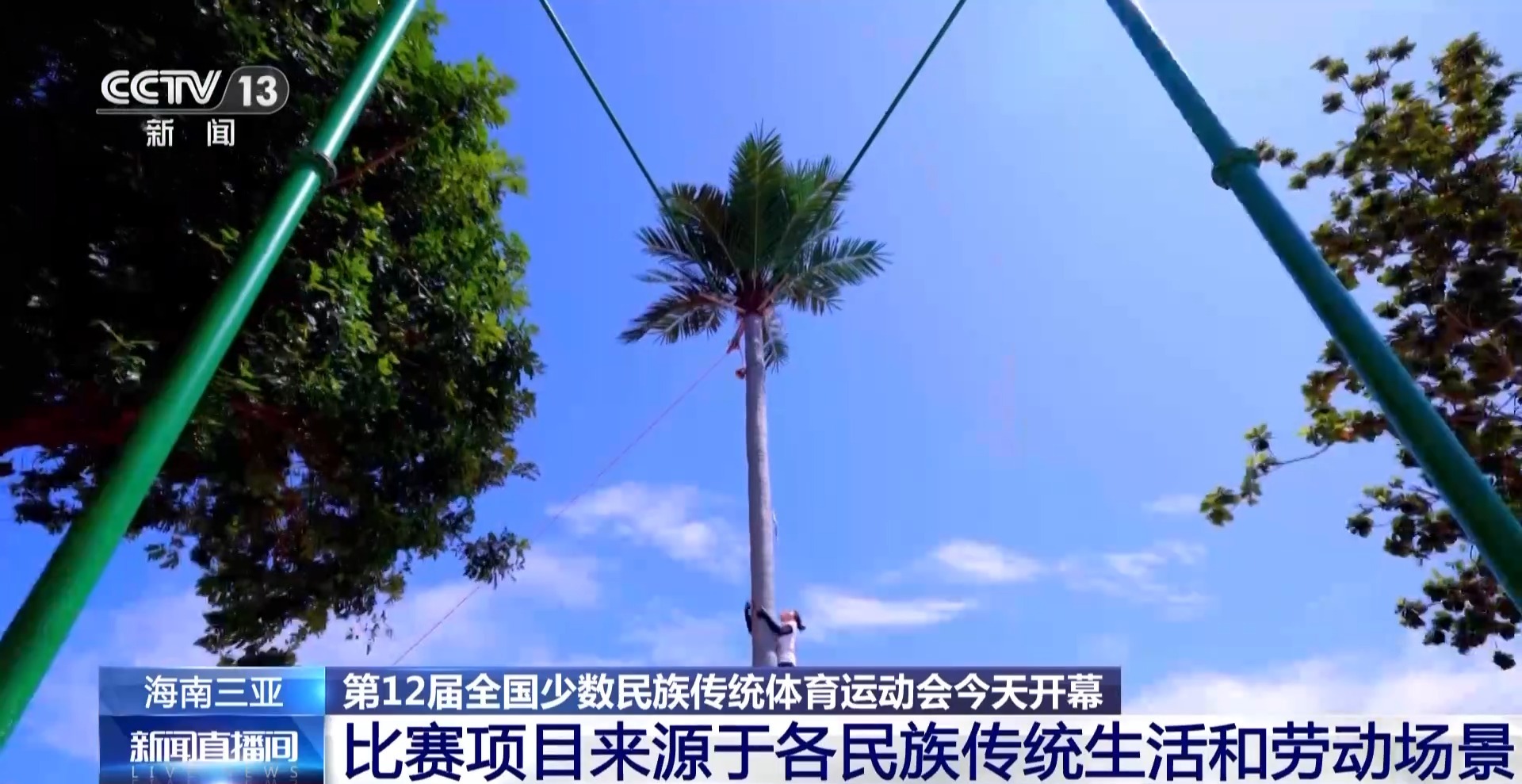 今年新增的攀椰竞速,来源于海南各民族爬树摘椰子的生活场景;