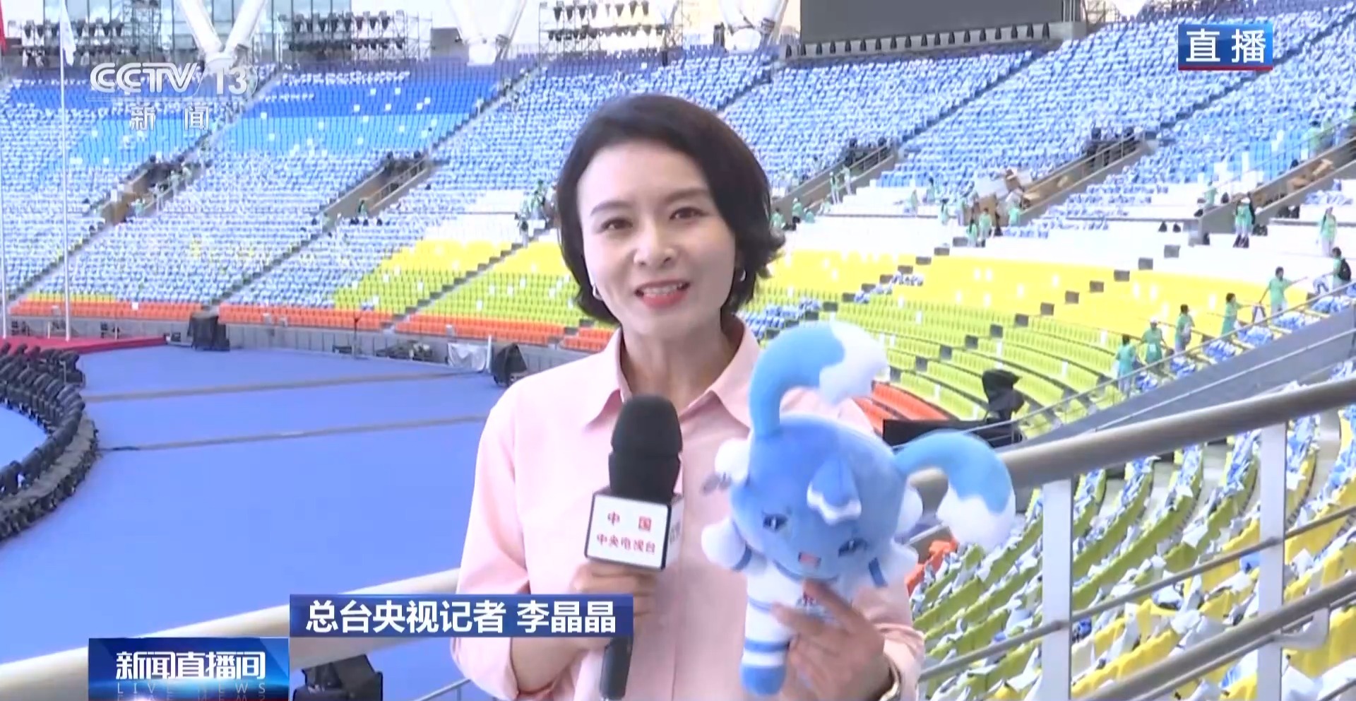 体育场的顶部,环绕一周,有很多银色的反射球吊在空中,正好56个,象征着56个民族。演出时,激光灯打在这些反射球上,微微一旋转之后,整个体育场就会变成一个巨大的星空宇宙。