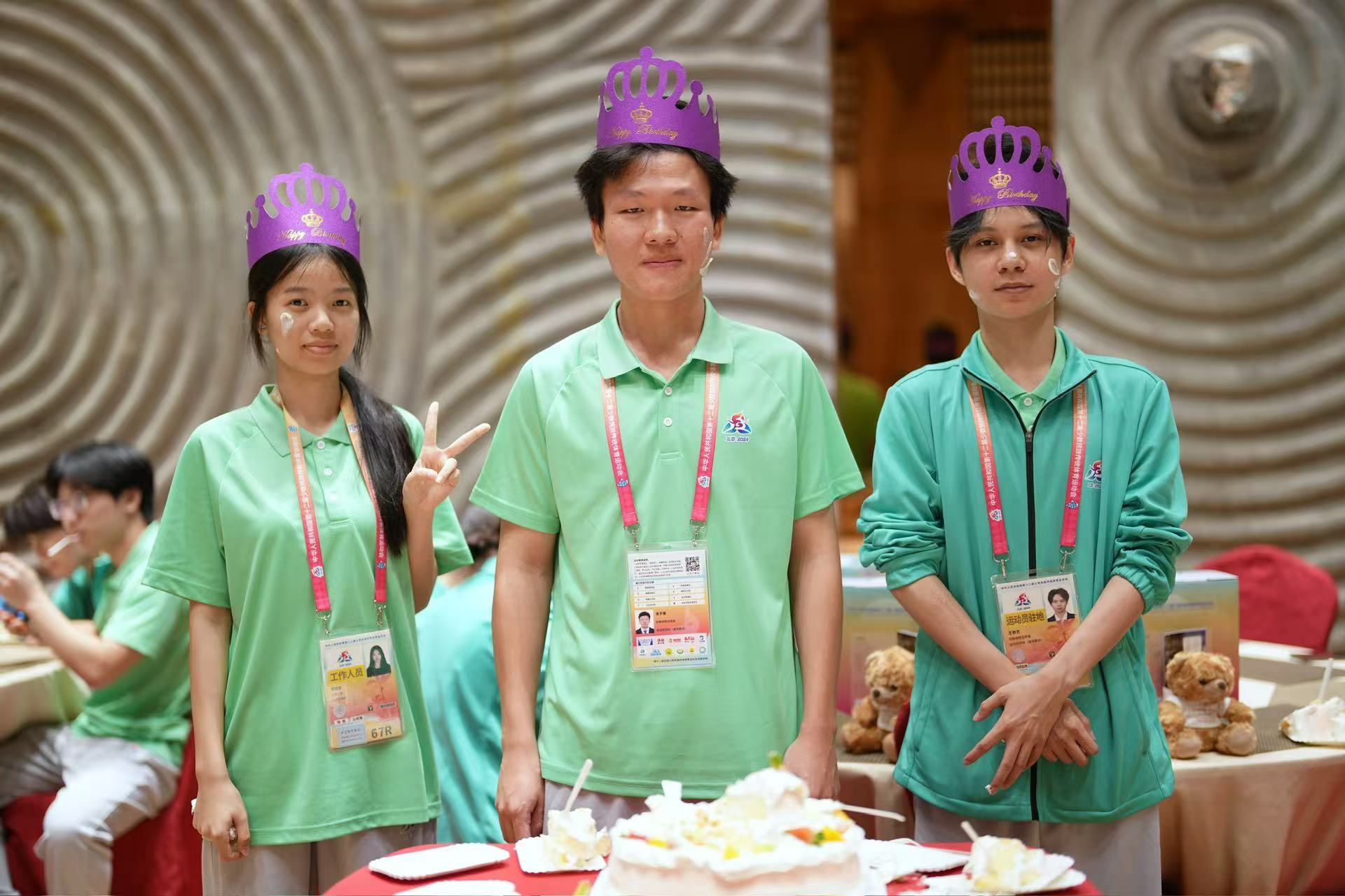 无独有偶,开赛当天,张子雄、王恭艺与李晓曼也迎来新的一岁。作为运动员驻地与交通运输部的三位青年大学生志愿者,和朱梦丹一样,他们也在蛋糕与队友的陪伴下,度过了一个难忘的生日。