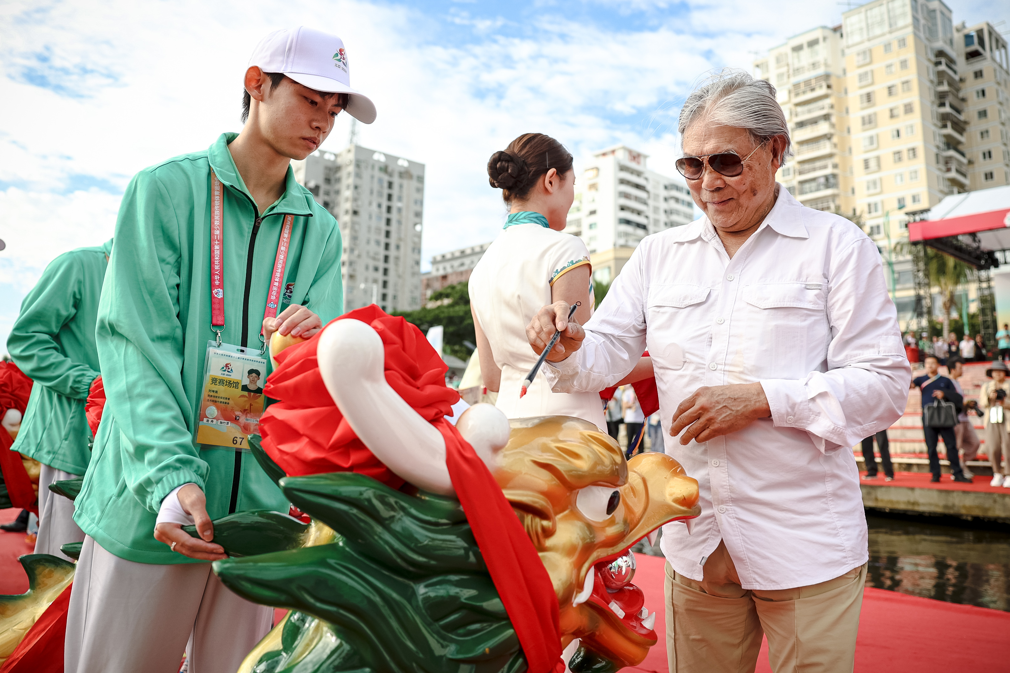 比赛开始前还举行了龙舟巡游,巡游前的龙舟披红点睛仪式,则既是预祝比赛顺利进行,也彰显对龙舟赛及传统文化的重视。