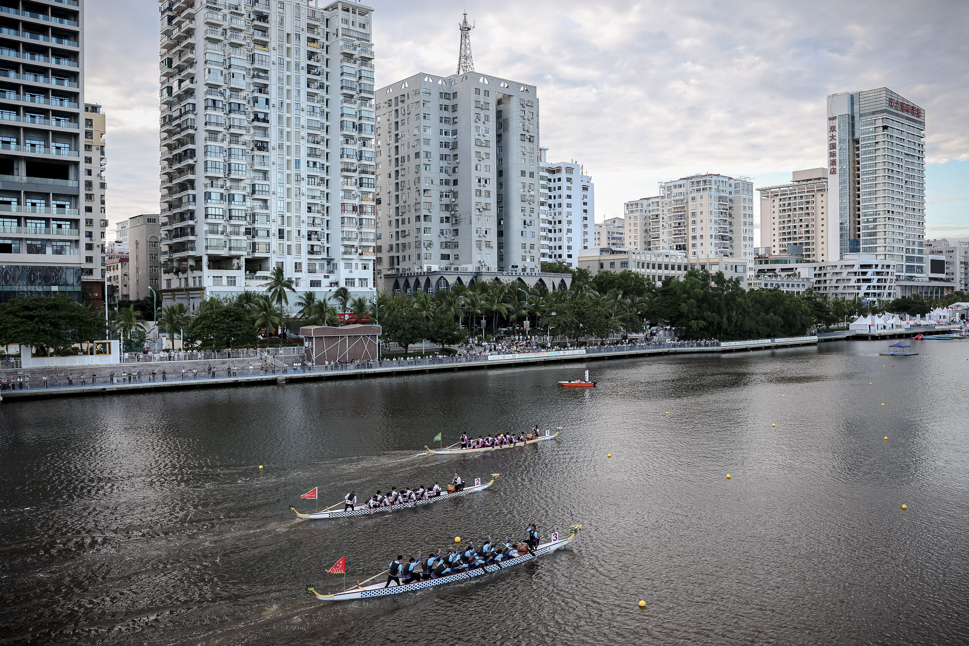 这不仅是体育竞技的舞台,也是各民族团结友爱、共同进步的盛会。设立的奖项不是金、银、铜牌,而是一、二、三等奖。蜿蜒入海的三亚河上,本届运动会开幕后决出的第一个一等奖在当日上午产生。贵州队在标准龙舟男子直道竞速1000米比赛中率先冲过终点,引起河岸上驻足的观赛群众的欢呼。