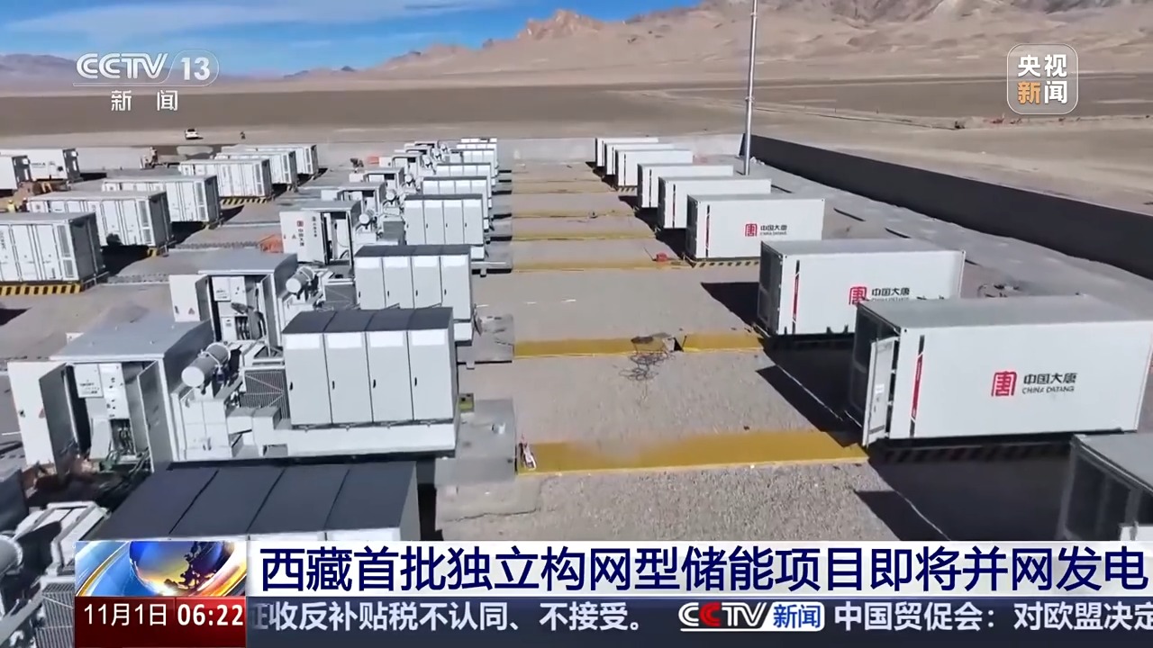 大唐阿里地区独立构网型储能保供项目部经理 张亚军:项目投产后每天可提供约28万度电,60个电池仓可解决阿里地区上万户居民用电。