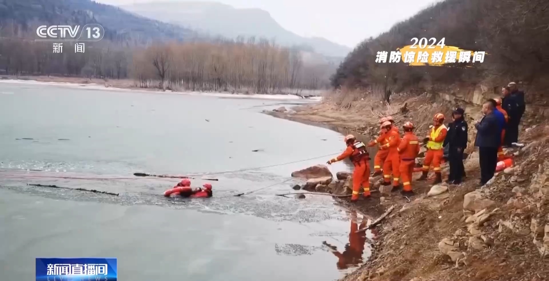 冰水刺骨,但消防员怀抱的臂膀给遇险者传递着温暖的力量。
