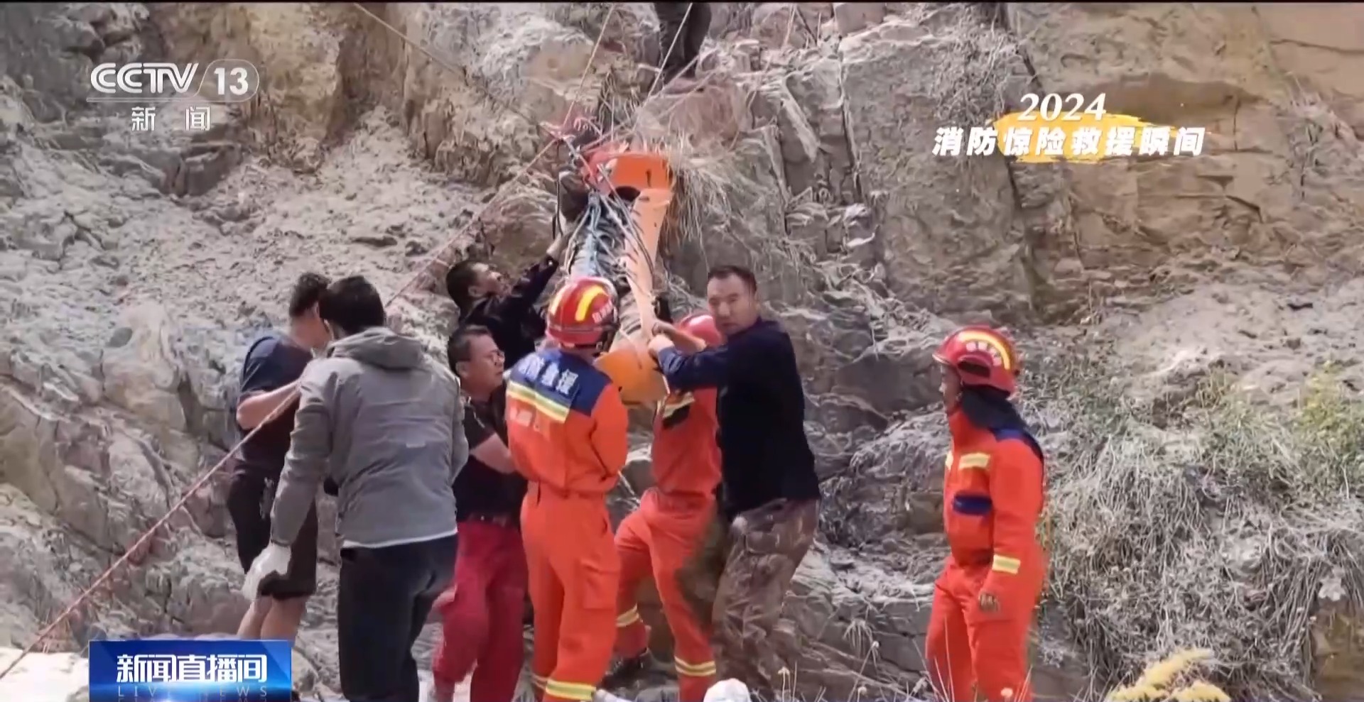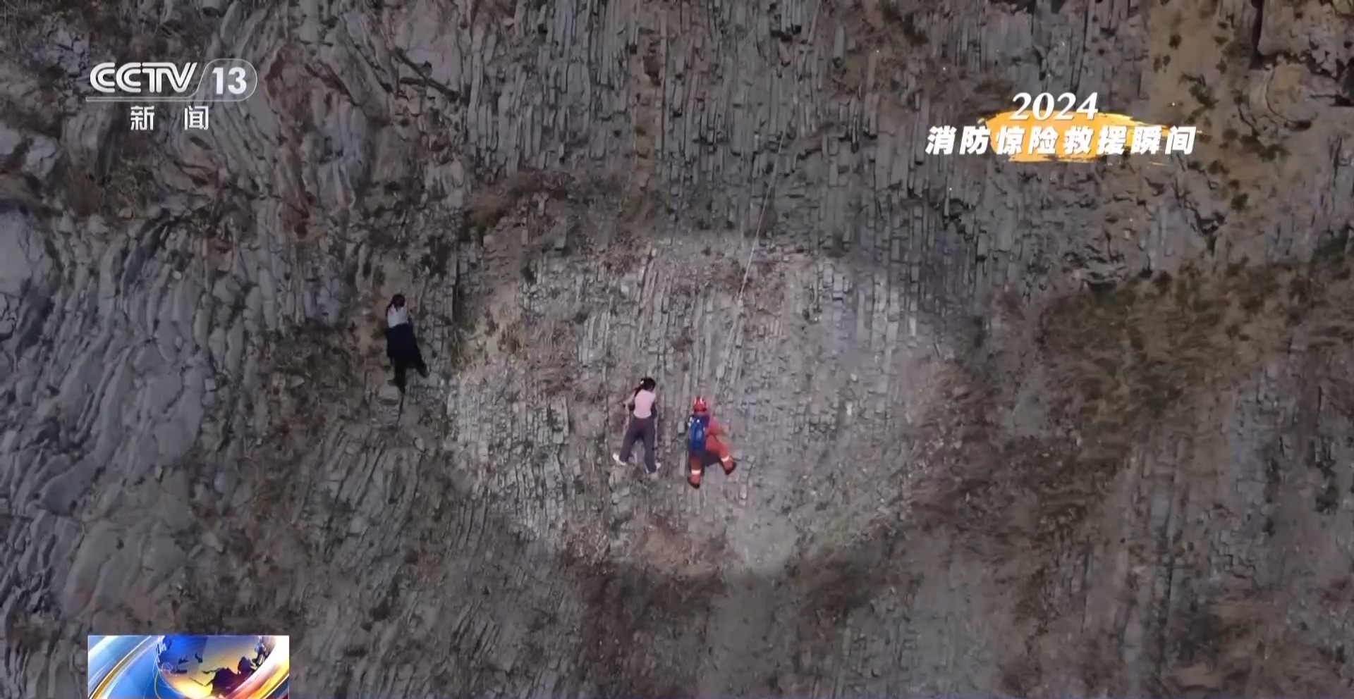 崖壁上演紧急救援