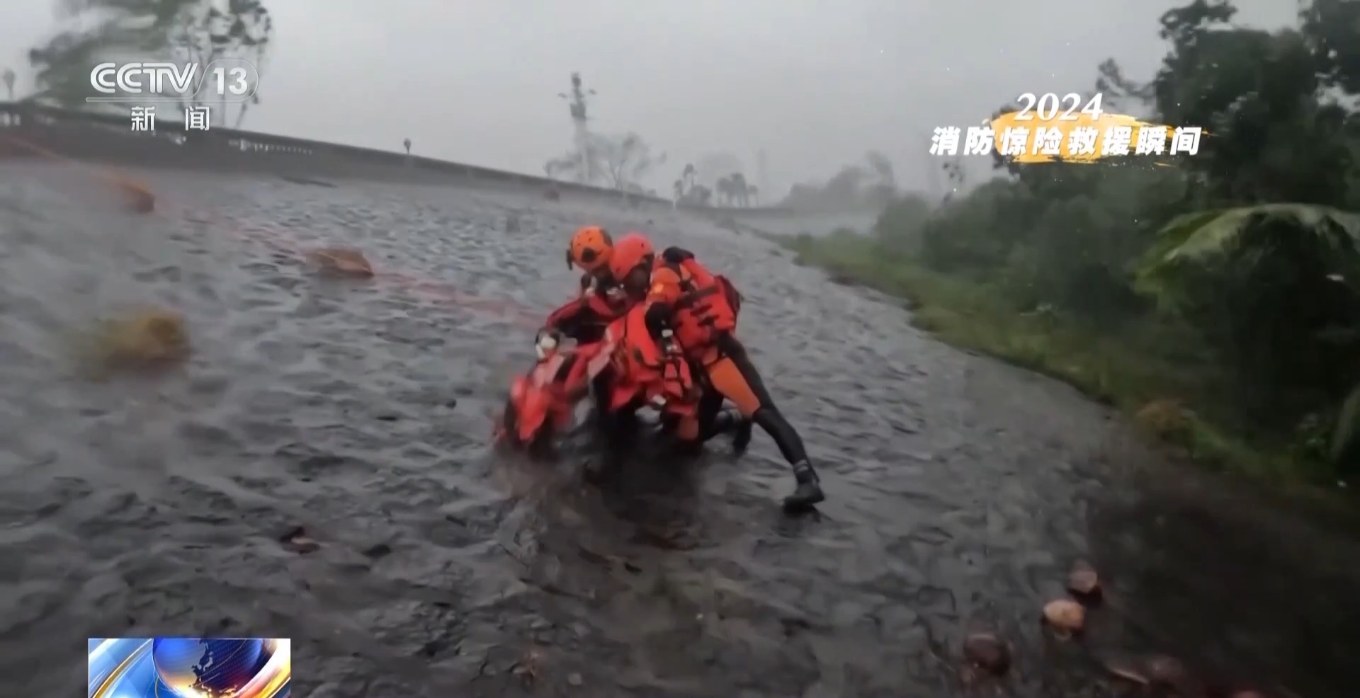 风雨交加中,这些橙色的身影就是人们走出险境最坚实的依靠。