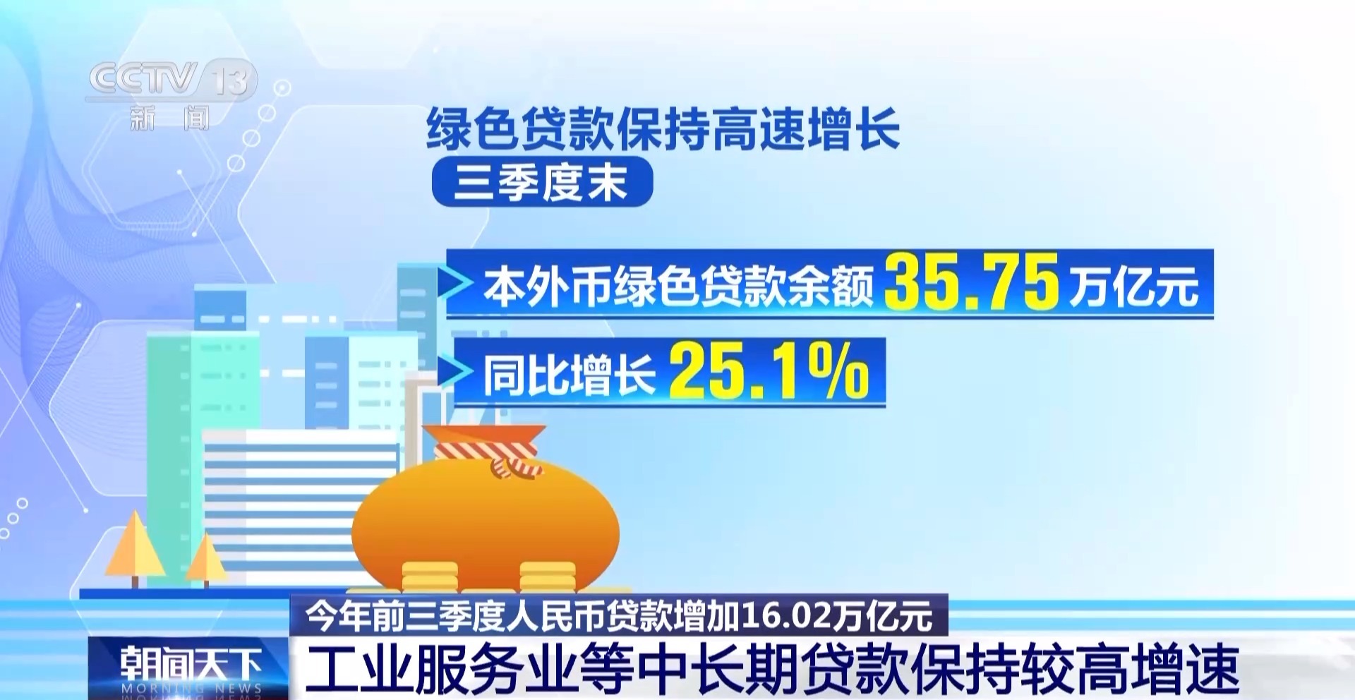 中国人民银行昨天(8日)公布了三季度末金融机构贷款投向报告,报告显示,前三季度人民币贷款增加16.02万亿元。