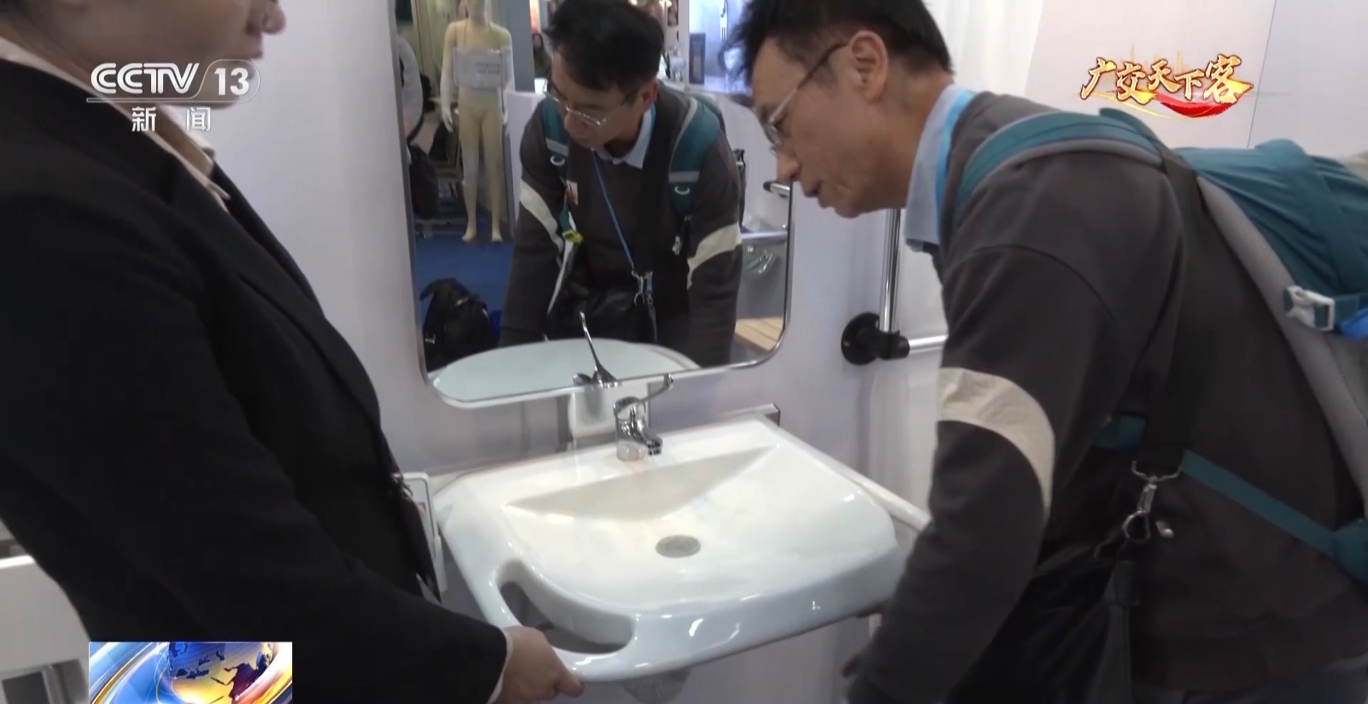 广州市某洁具有限公司总经理 徐志良:他们坐着轮椅进浴室时可以坐下来洗手洗脸,轻轻一按遥控器,洗脸台就可以降低或者升高。