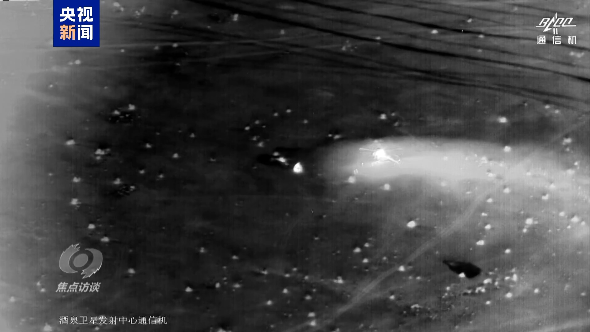 最后一次落点预报,此时,飞船马上就要降落,空中分队的飞机也已经开始下降。黑夜要在沙漠中安全降落,考验的不仅是飞行技术,也是团队的配合。