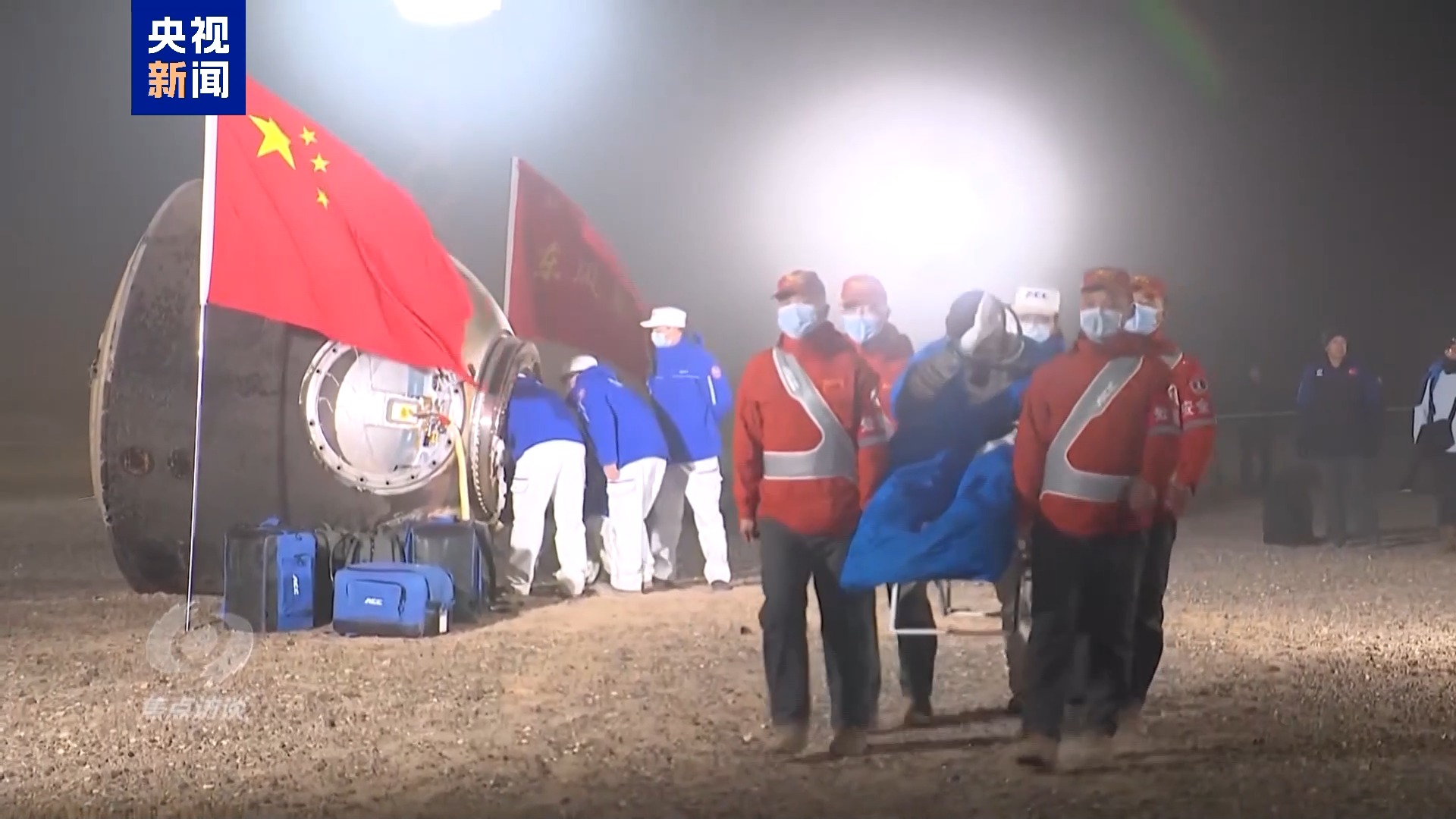 满载收获,11月3日下午,任务的最后阶段开始了。绕地球飞行5圈,神十八到达地面正是凌晨,这是中国空间站开建以来,返回时间和环境最特殊的乘组之一,考验的是整个载人航天系统在暗夜回收的能力。