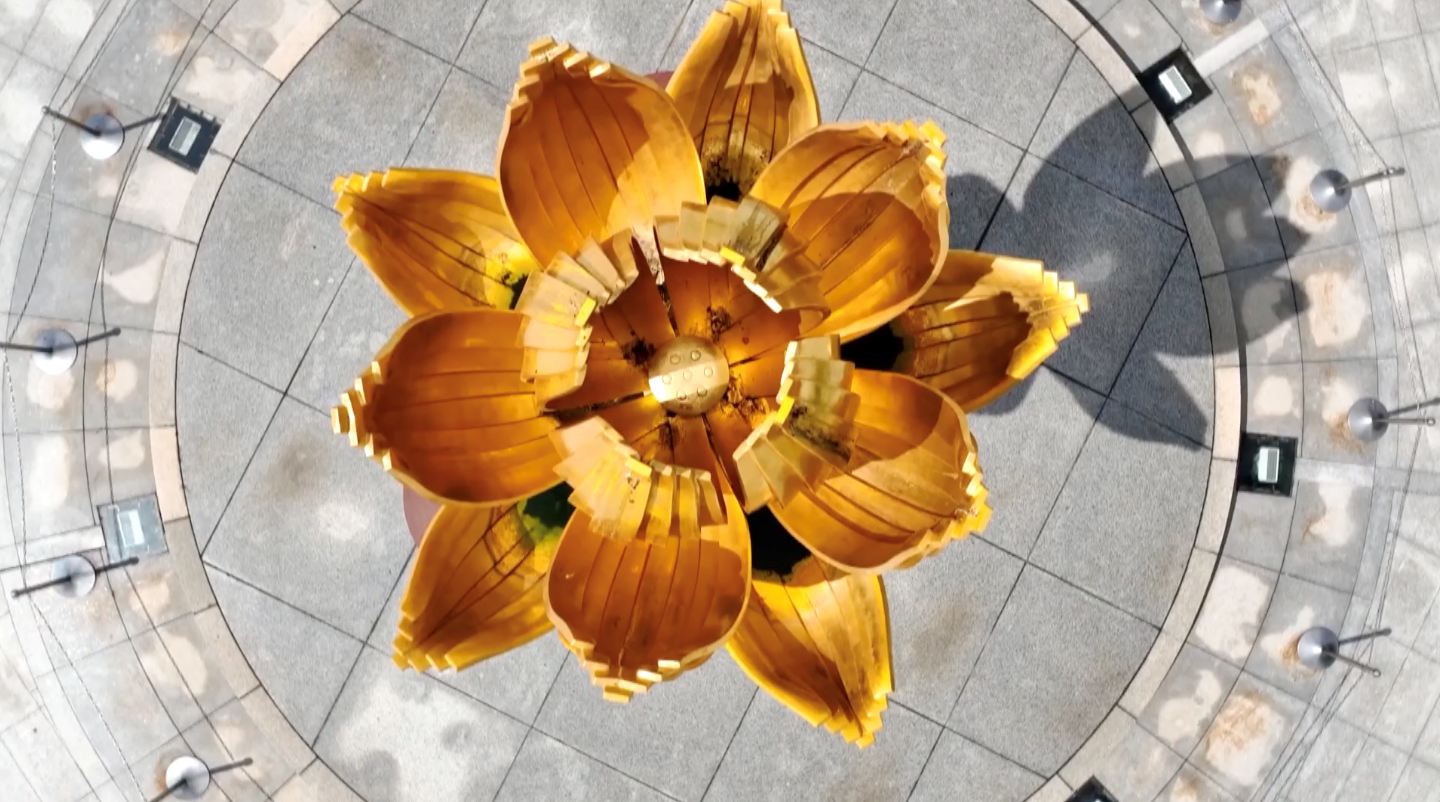 莲花盛开,亭亭玉立,冉冉升腾,象征澳门永远繁荣昌盛。形似莲叶的三层红色花岗岩,层层相叠,寓意澳门三岛同心。它是祖国母亲对回归游子的美好祝愿,也带着全国人民的深情厚谊。