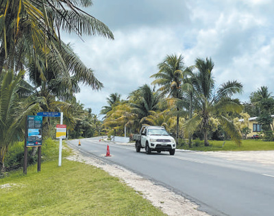 一辆客货两用车行驶在完成升级改造后的纽埃环岛公路上。