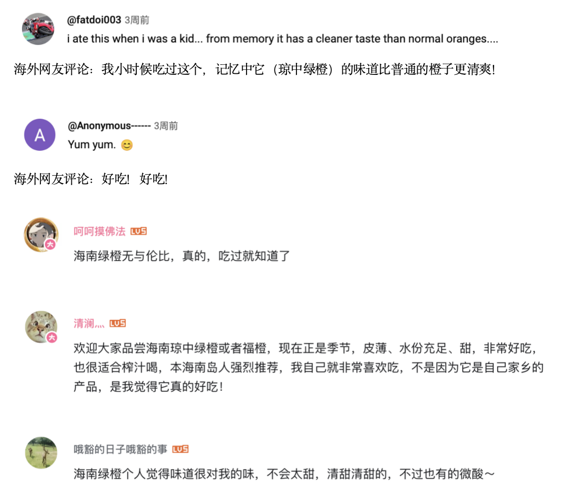哈维在个人社交媒体账号上发布了4条视频,总播放量已超7万次。其中,他分享海南特产琼中绿橙的视频吸引了不少网友“围观”。许多网友纷纷回忆起童年时光,表示:“我小时候吃过这个,记得它比普通橙子更清爽!”。海南本地人和外地游客也在评论中推荐这款美味:“真的很好吃!强烈安利大家尝试一下,尤其是很干燥的地方,来一个超级解渴!秋冬季我的爱。”“欢迎大家品尝海南琼中绿橙,皮薄、水分充足、甜,本海南岛人强烈推荐,我自己就非常喜欢吃!”