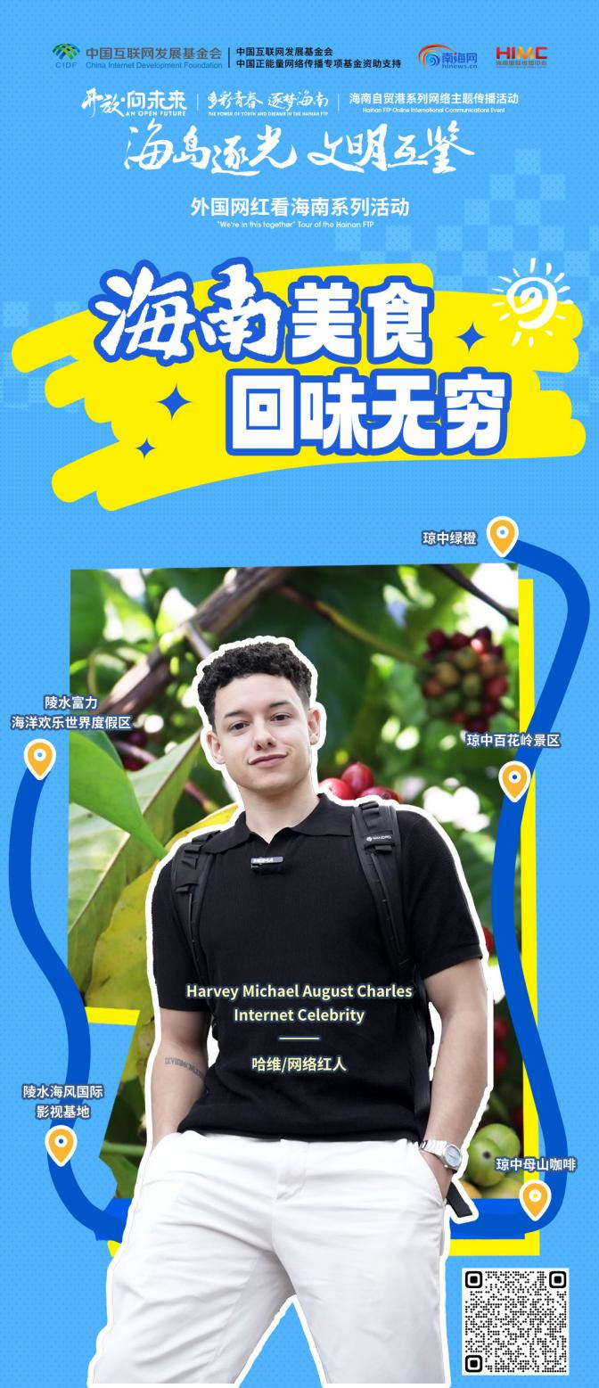 南海网12月5日消息(记者 潘頔)来自英国的网络红人,自媒体博主哈维(Harvey Charles)解锁了海岛不同产业的奇遇密码,他以第一视角的体验,将海南的魅力展现给了全世界的观众。一组海报合辑带你重温Harvey Charles体验琼中绿橙、琼中母山咖啡、琼中百花岭、陵水海风国际影视基地、陵水富力海洋欢乐世界度假区的精彩时刻。