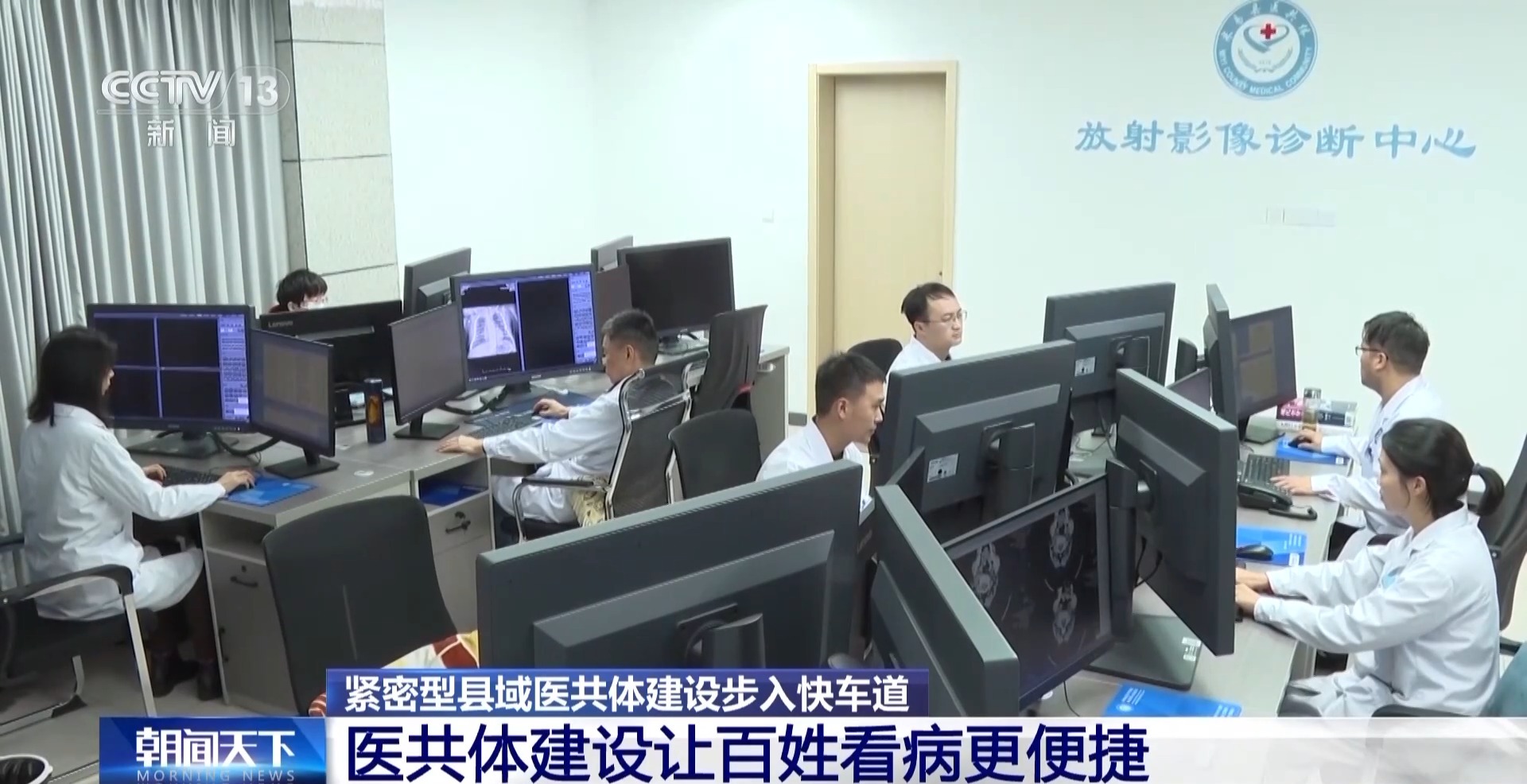 县域医共体是指以县级医院为龙头、乡镇卫生院为枢纽、村卫生室为基础,构建三级联动的县域医疗服务体系,形成服务共同体、责任共同体、利益共同体、管理共同体。今年以来,我国加快推动县域医共体内以人员为核心的资源下沉,同步实施服务、技术、管理下沉,开展巡回医疗和巡诊派驻,全国90%以上的县实现了县级医院人员派驻乡镇卫生院全覆盖。各地加快医学影像、医学检验、心电诊断等县域内资源共享中心建设,推动基层检查、上级诊断、结果共享互认,让群众在基层就能享便捷、优质的检查诊断服务。目前影像中心已经覆盖全国70%以上的乡镇卫生院。
