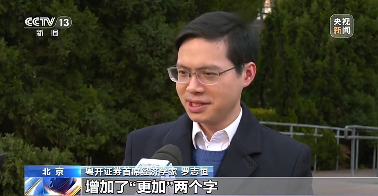 粤开证券首席经济学家 罗志恒:延续了财政政策的总体基调,增加了“更加”两个字,就是我们政策的主动性,走在预期前面。尽可能靠前发力来稳定预期。财政政策组合发行和使用,会进一步去靠前来更好落地生效,来扩大总需求。