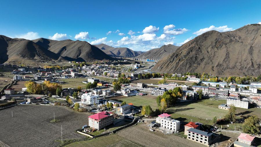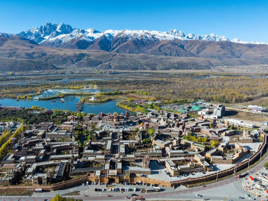 这是2024年10月29日拍摄的四川省甘孜州甘孜县的格萨尔王城(无人机照片)。新华社记者 沈伯韩 摄