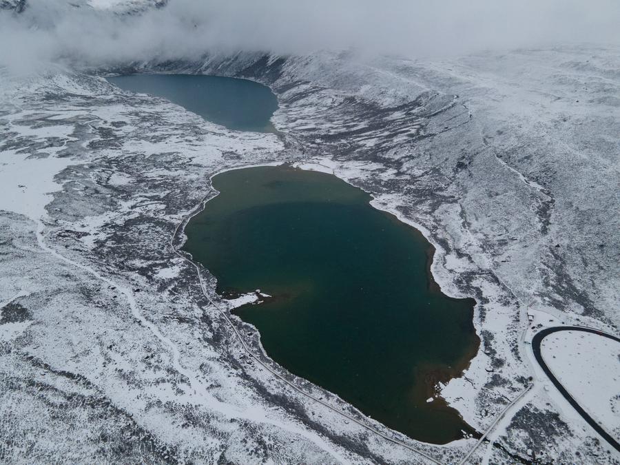 这是位于四川省甘孜藏族自治州巴塘县境内国道318公路旁的海子山姊妹湖(11月4日摄,无人机照片)。新华社记者 储加音 摄