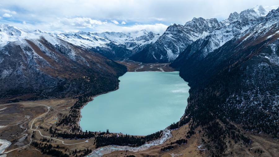 这是2024年11月1日在四川省甘孜州德格县境内拍摄的玉隆拉措(无人机照片)。新华社记者 沈伯韩 摄