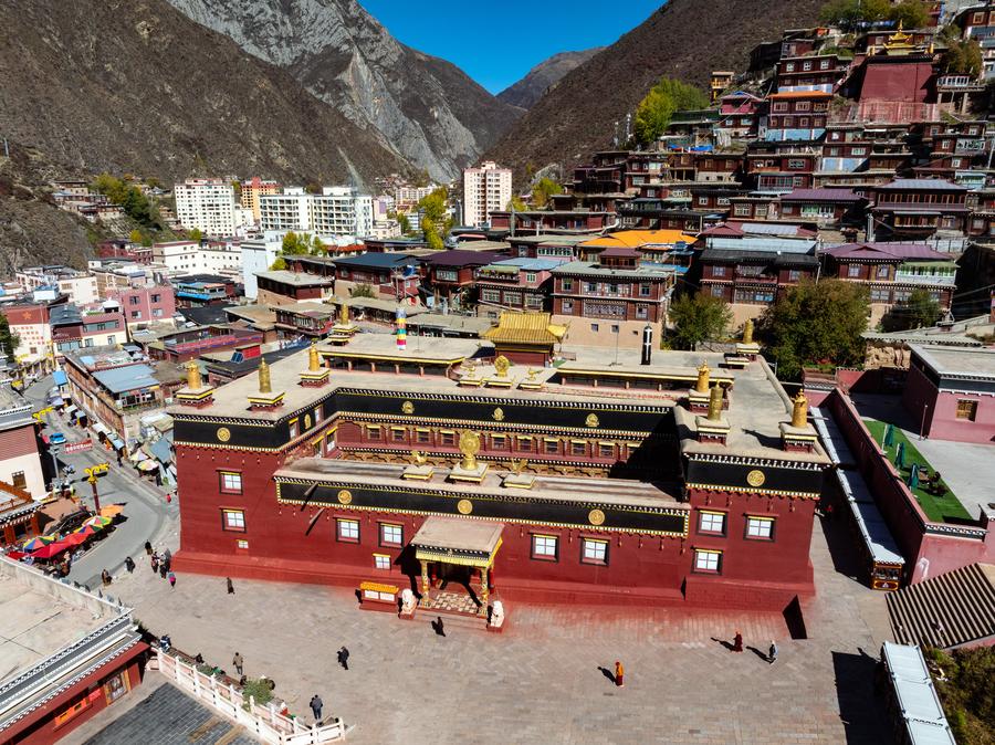 这是2024年11月2日在四川省甘孜州德格县拍摄的德格印经院(无人机照片)。新华社记者 沈伯韩 摄