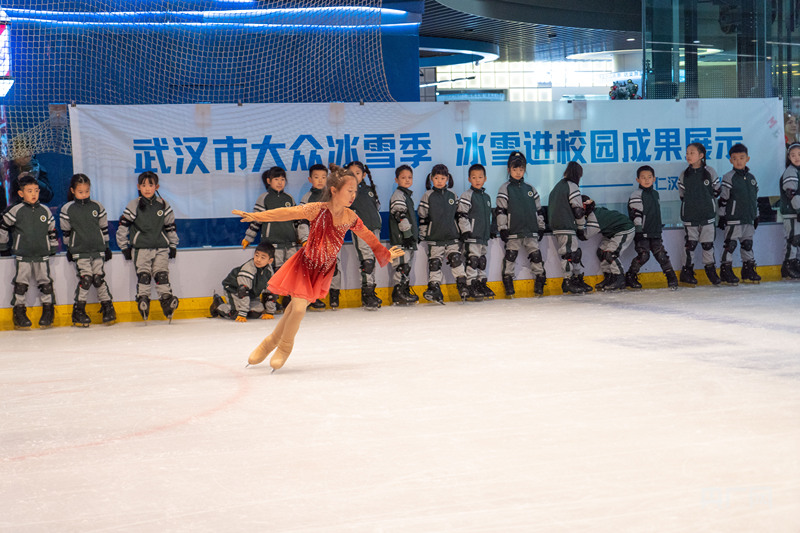 “踏步前行、直线滑行、弯道滑行、摔倒、起身……”12月21日下午,来自武汉市崇仁汉滨第二小学的47名学生一边嘴里小声打着节拍,一边整齐划一地随着指令变化着各式各样的队形,展示着冰雪进校园的成果。