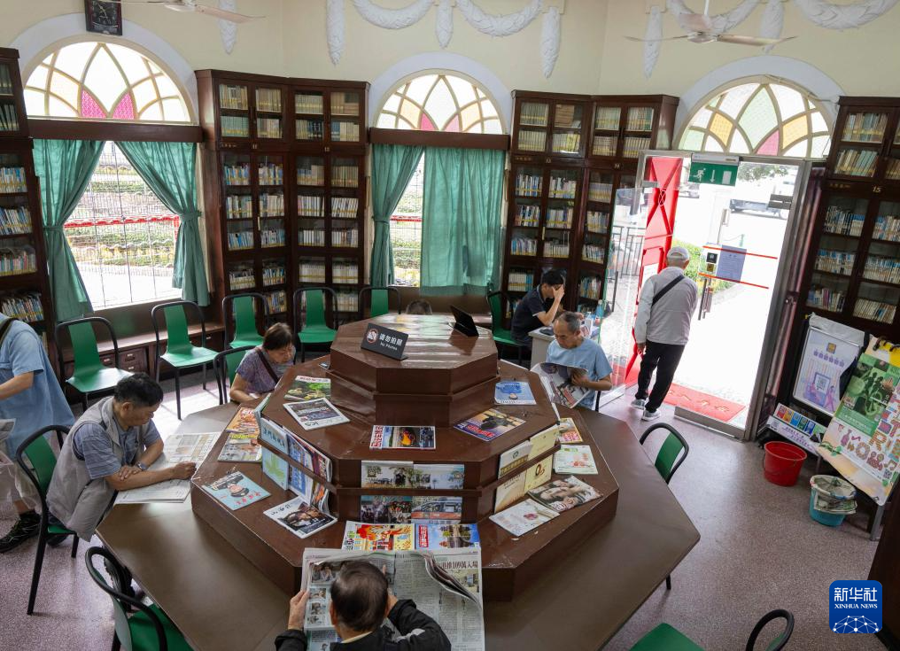 人们在八角亭图书馆阅读报章(10月30日摄)。新华社发(张金加 摄)
