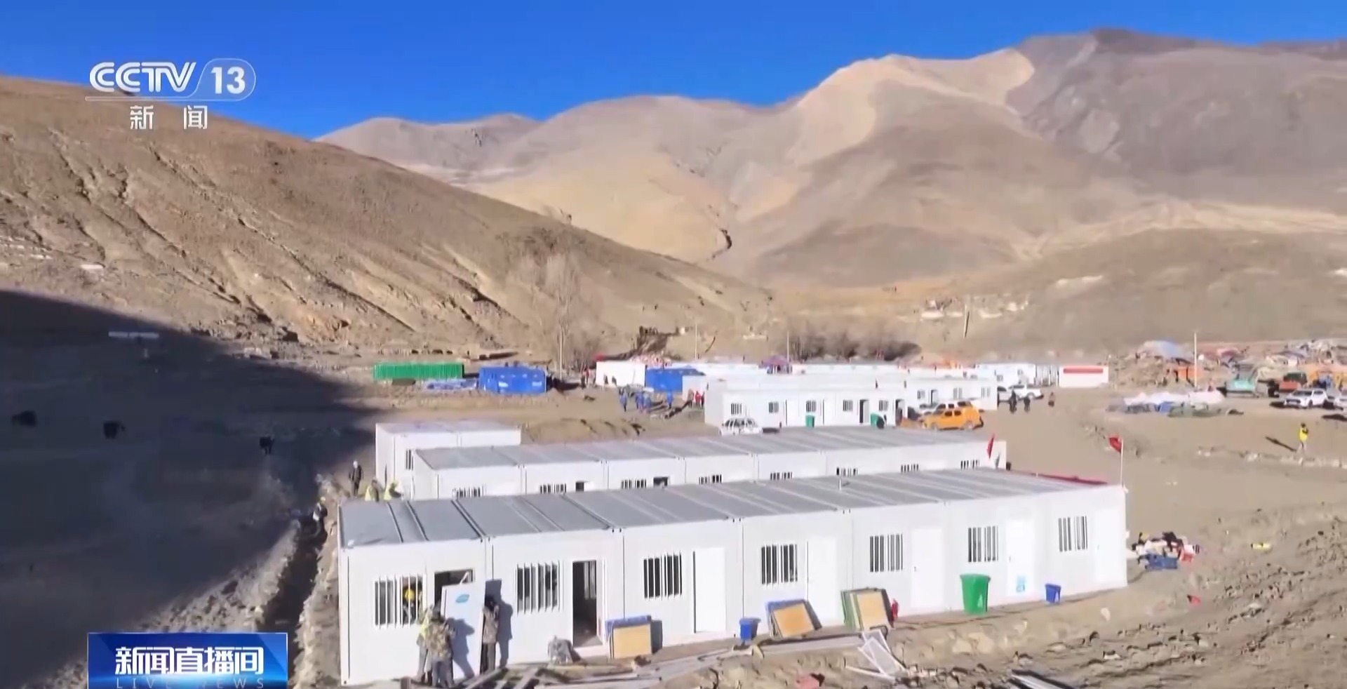 西藏定日县7日发生6.8级地震,地震后,灾区各安置点正在加紧搭建板房,让受灾群众尽快住进更保暖、防风性更好的活动板房。在长所乡古荣村,有23户村民从10日开始已经陆续搬到了新建的板房当中。