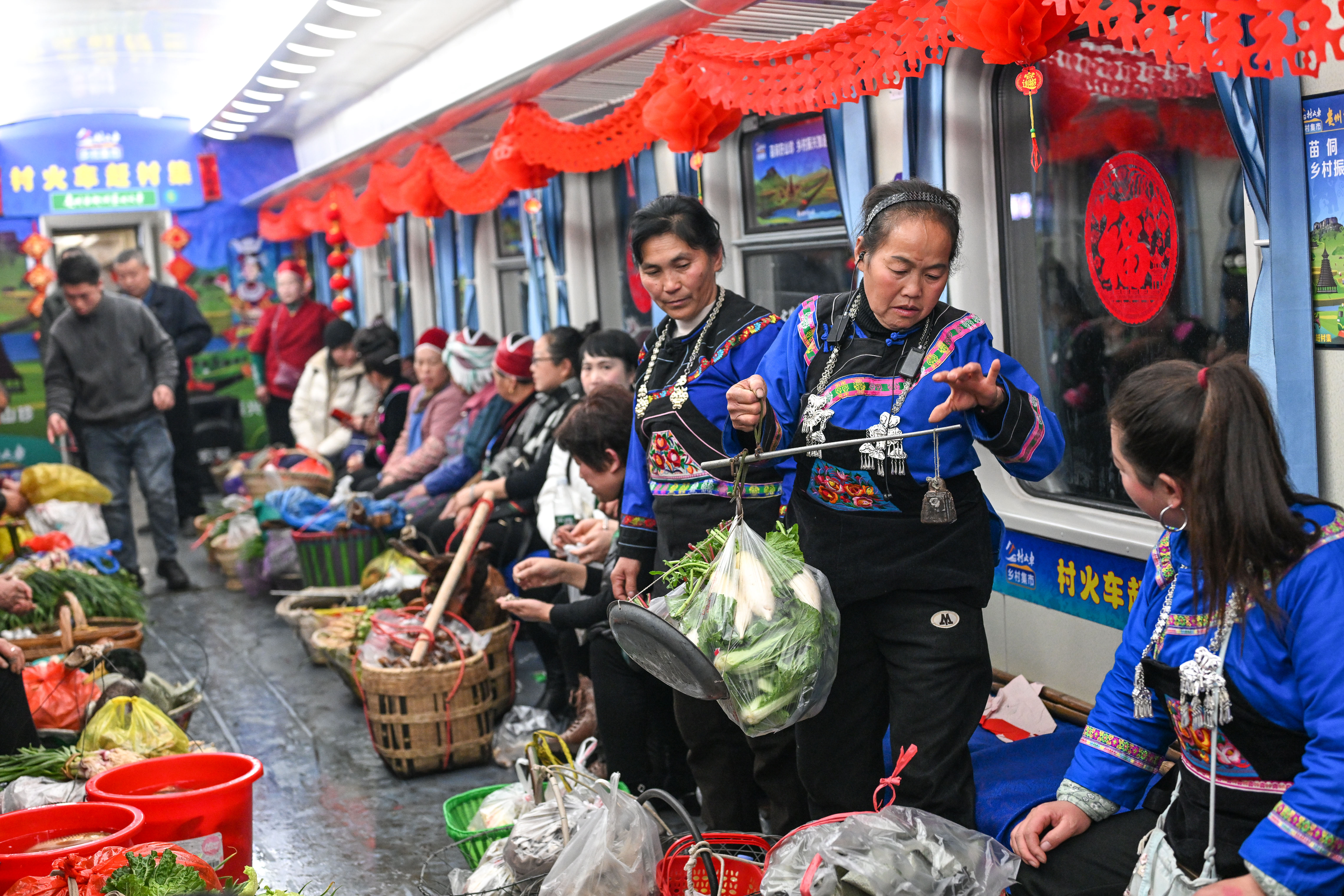 新鲜的农产品、喜庆的车厢、特色的民族歌舞、精美的非遗展示……1月18日,2025年全国乡村“村晚”示范展示活动暨“村火车上的村T村晚”启动仪式,在贵阳开往玉屏的5640次“慢火车”上举行。