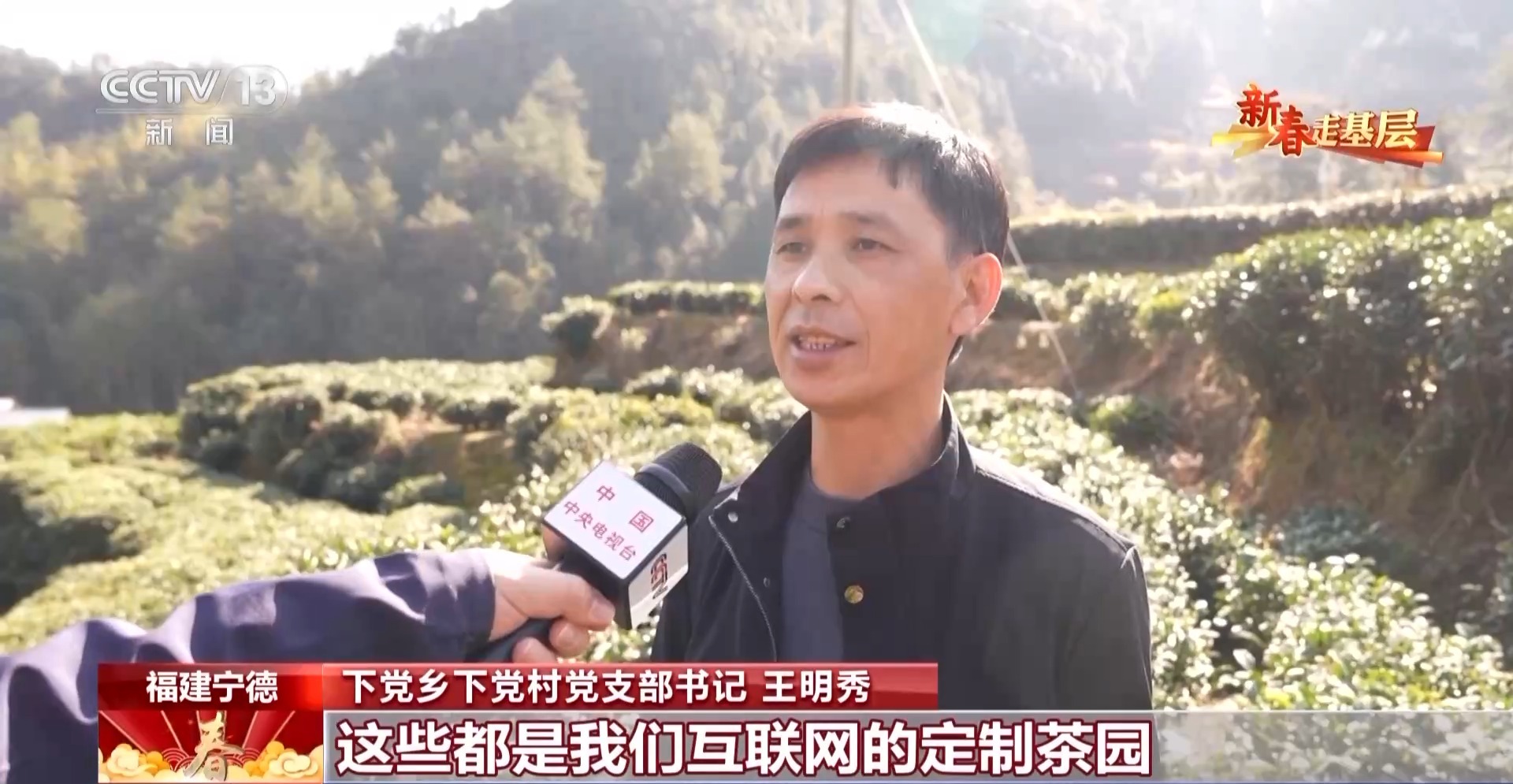 下党乡下党村党支部书记 王明秀:这些都是我们互联网的定制茶园,这些被客户订走了,客户通过我们的实时监控可以看到他的茶园。通过这种模式,我们原来的每亩茶叶只能收入2000多元,到现在这种每亩可以达到8000多元。
