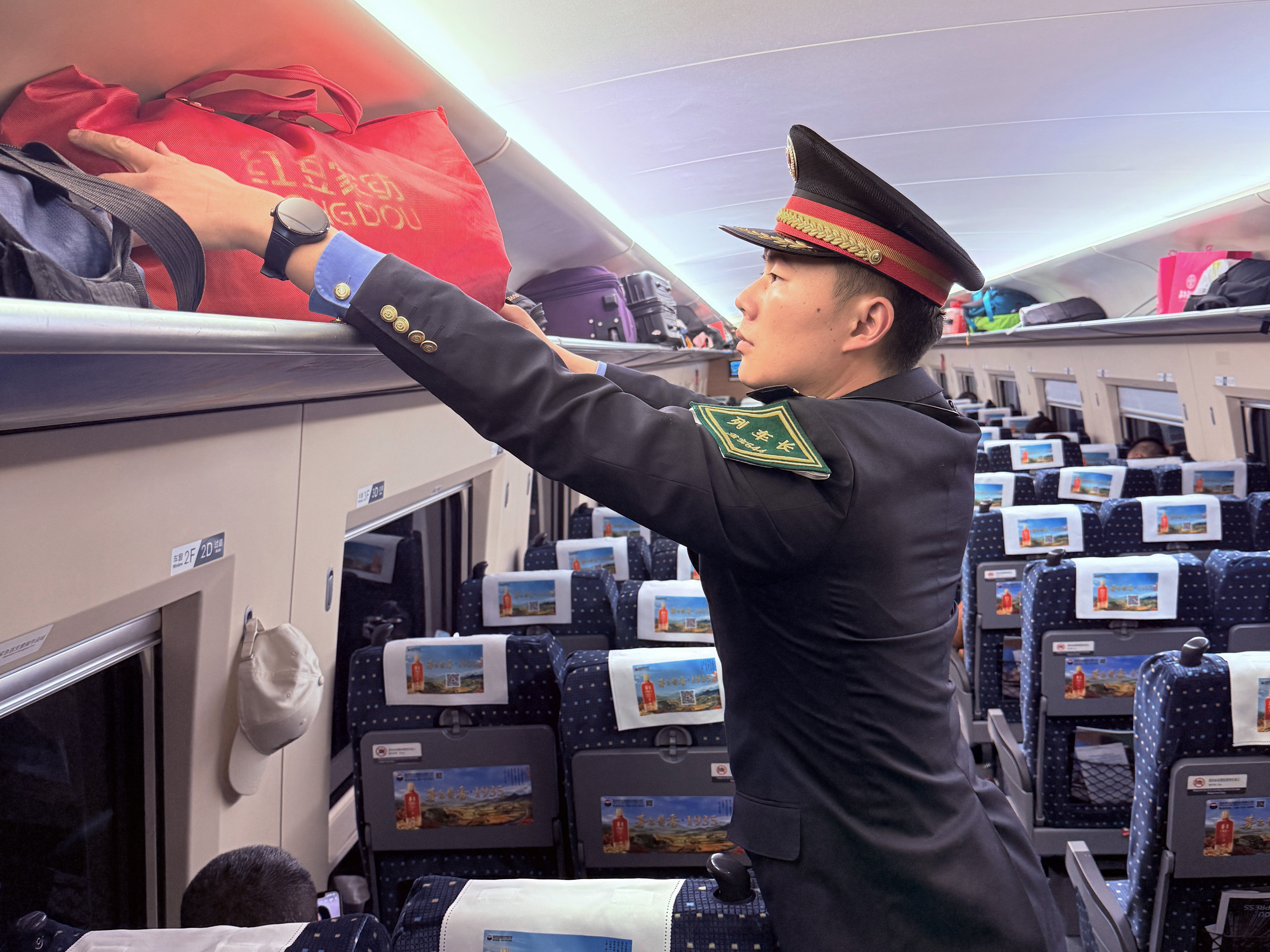 晨光微露,G1833次列车从青岛北站缓缓驶出。为了更好值乘本次列车,列车长王华的工作从早上4:50就已经开始了。他告诉记者,早上这个时段他的工作一般都是为旅客解答诉求、办理票务。