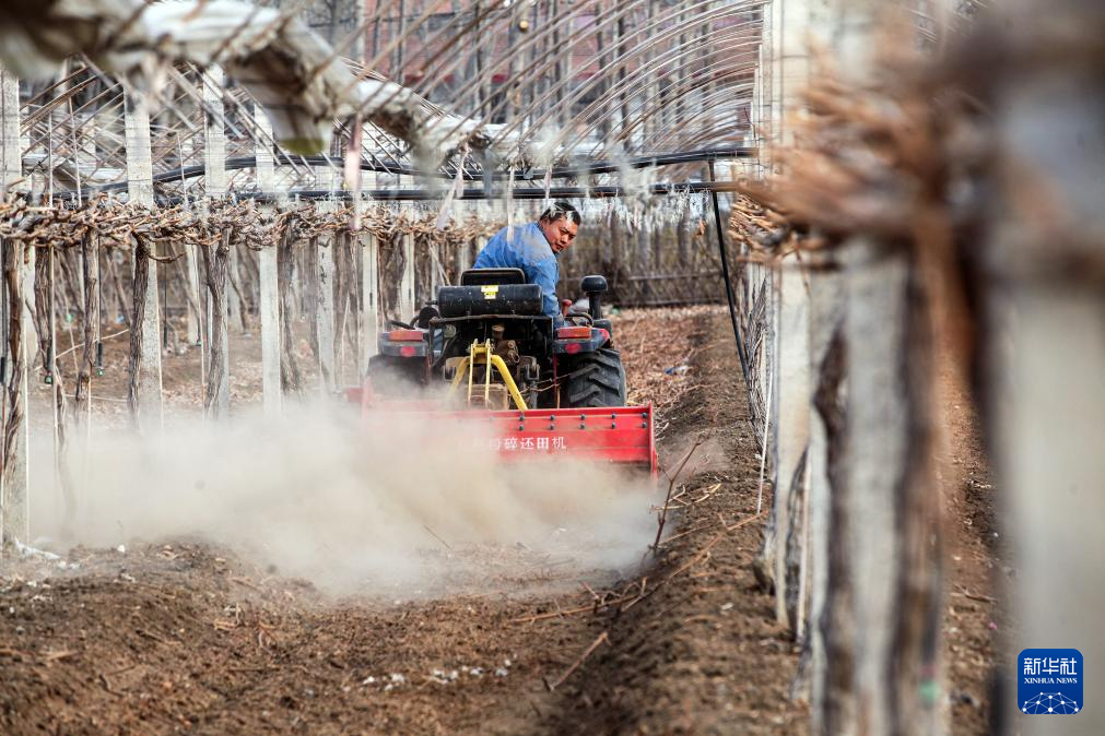 2月17日,村民在河南省焦作市博爱县磨头镇狮口村葡萄园里劳作。