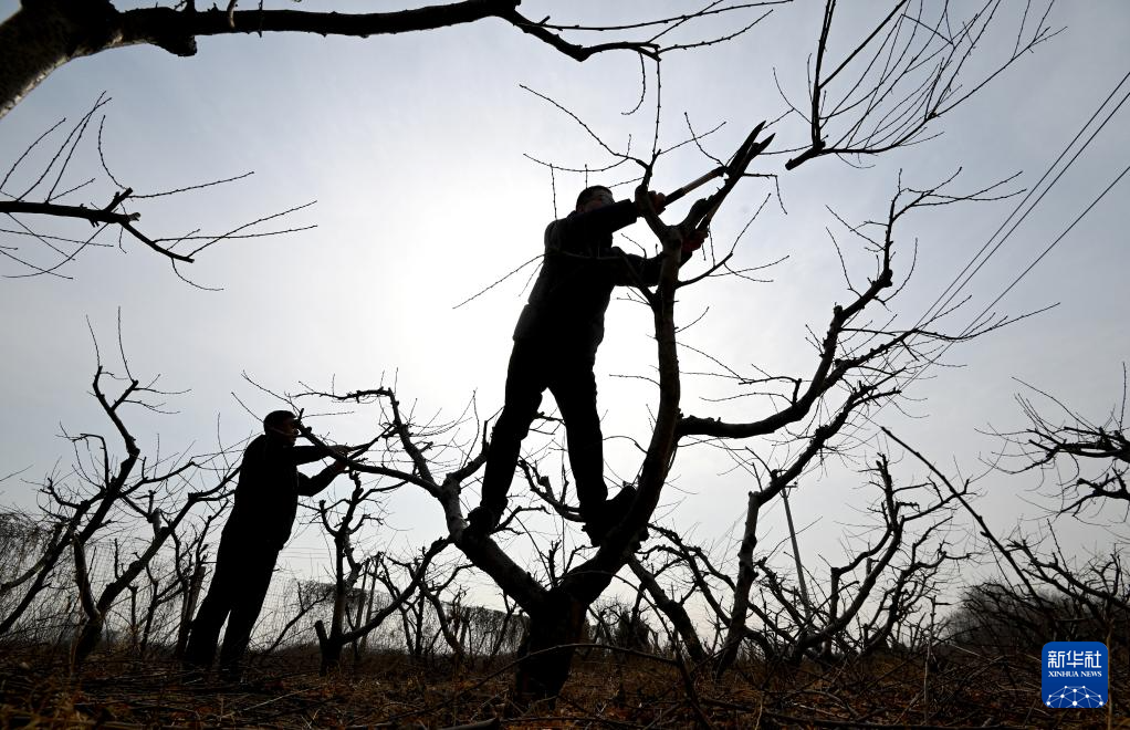 2月17日,河北省邯郸市峰峰矿区彭城镇炉上村村民在修剪桃树。