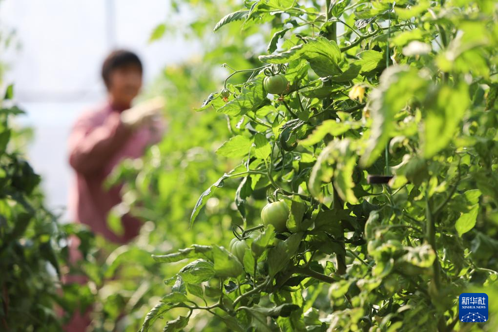 2月17日,河北省石家庄晋州市周家庄乡农民在大棚内管护西红柿。