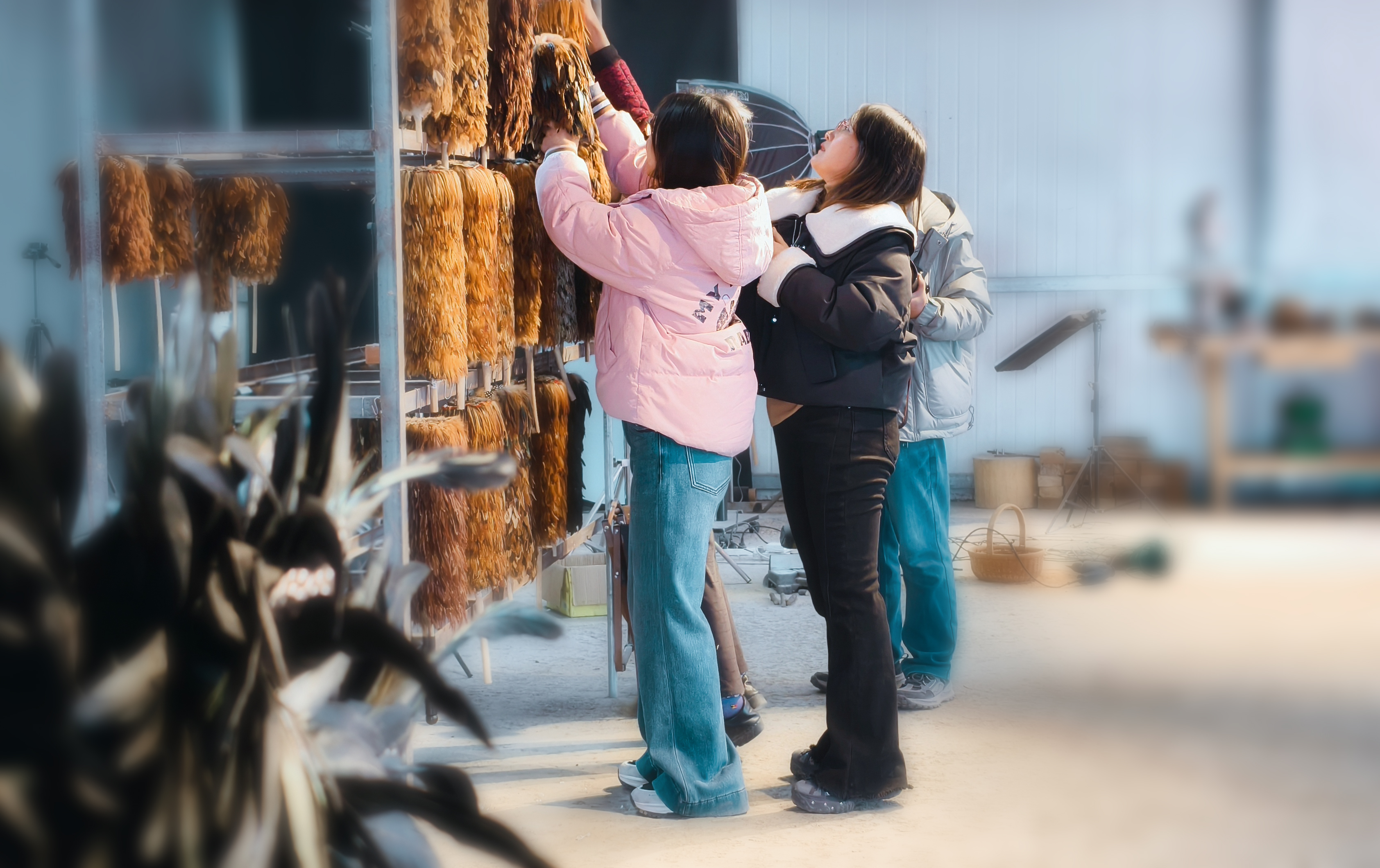 “家人们,咱这鸡毛掸子纯手工制作,掸尘一绝,快下单试试。”走进河北唐山滦南县张麻湾村的电商直播基地,记者看到屋里墙上挂满了各式各样的鸡毛掸子,张诗曼跟两位小伙伴坐在桌前直播带货,一旁的乡亲们打包装货,现场紧张忙碌。