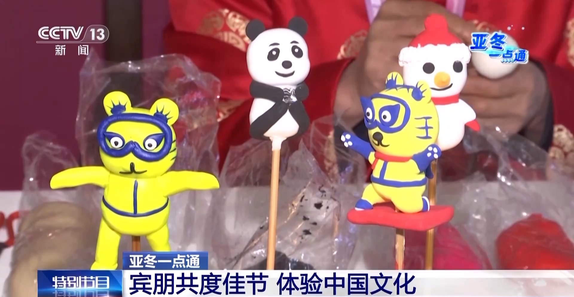 我旁边就是面塑技艺的展台,面塑在汉代就有文字记载,唐宋与曲艺结合,明清成为谋生的手段。制作材料以面粉、糯米粉为主,搭配蜂蜜等,可用食用色素调色。这也是我们国家的非物质文化遗产,运动员可以到这里一起来感受和体验非遗项目,现在工作人员正在做的吉祥物一会儿会送给运动员。
