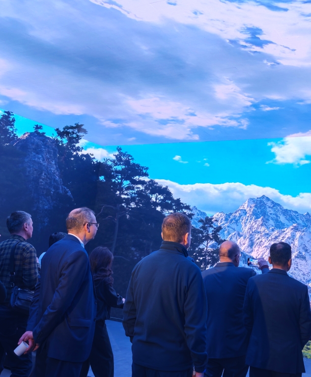 2025年2月21日,上合组织外宾在中国共产党历史展览馆长征主题沉浸影院观看影片。新华社记者 陆君钰 摄