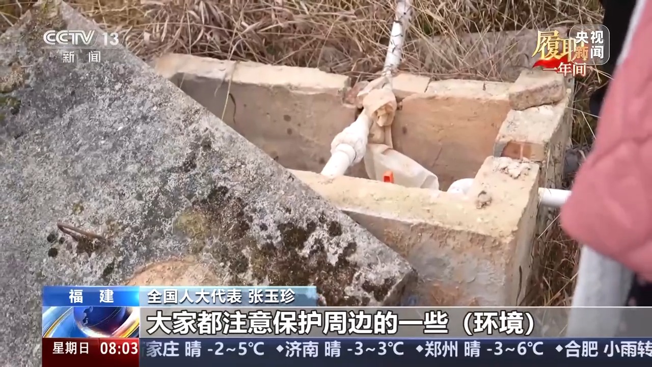 全国人大代表 张玉珍:这个水还是很干净的。这口监测井从监测的规范上来讲,是不是有点简陋了一些?有一些标志,有一些信息需要设立。大家看到这口井,都注意保护周边的一些环境。