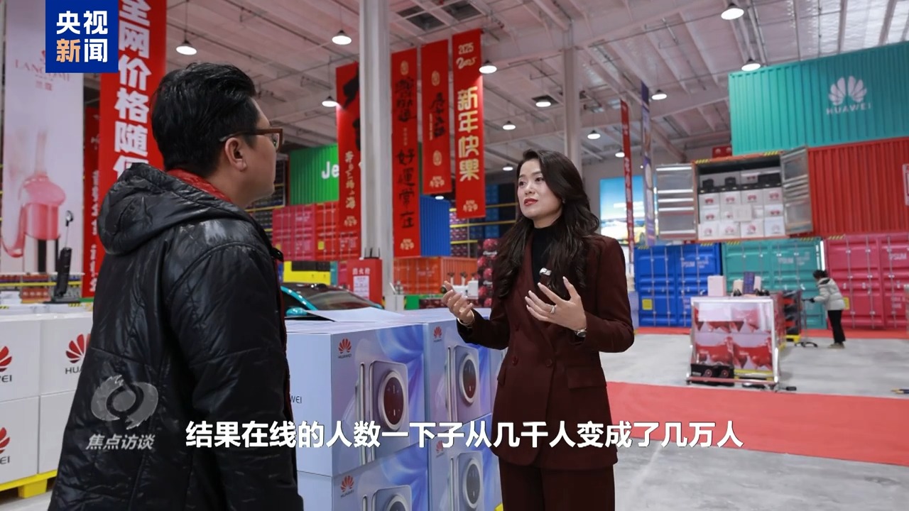 义乌某贸易公司负责人 马欢:很多粉丝他在直播间里互动的时候,就说你们家有没有那个产品,然后我们的这个主播就想我们仓库里有。所以拿着手机直播的时候,就从这个展厅走到仓库去,结果在线的人数一下子从几千人变成了几万人。所以那个时候发现,其实我们在仓库的这种直播的场景,可能会给我们的消费者、给粉丝带来更多的真实感。