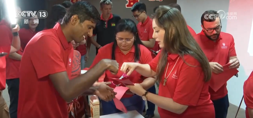 当地时间1月28日一大早,也就是北京时间的除夕夜,巴西东北部小镇阿波迪打破了往日的平静。很多当地民众知道,他们的中国朋友即将举行春节庆祝活动,因而早早地来到了活动现场。在现场,中国农业技术人员不仅贴上了春联、挂上了福字,还邀请当地民众一起看春晚、包饺子、剪窗花、写春联,这也是很多当地民众第一次参加春节庆祝活动。