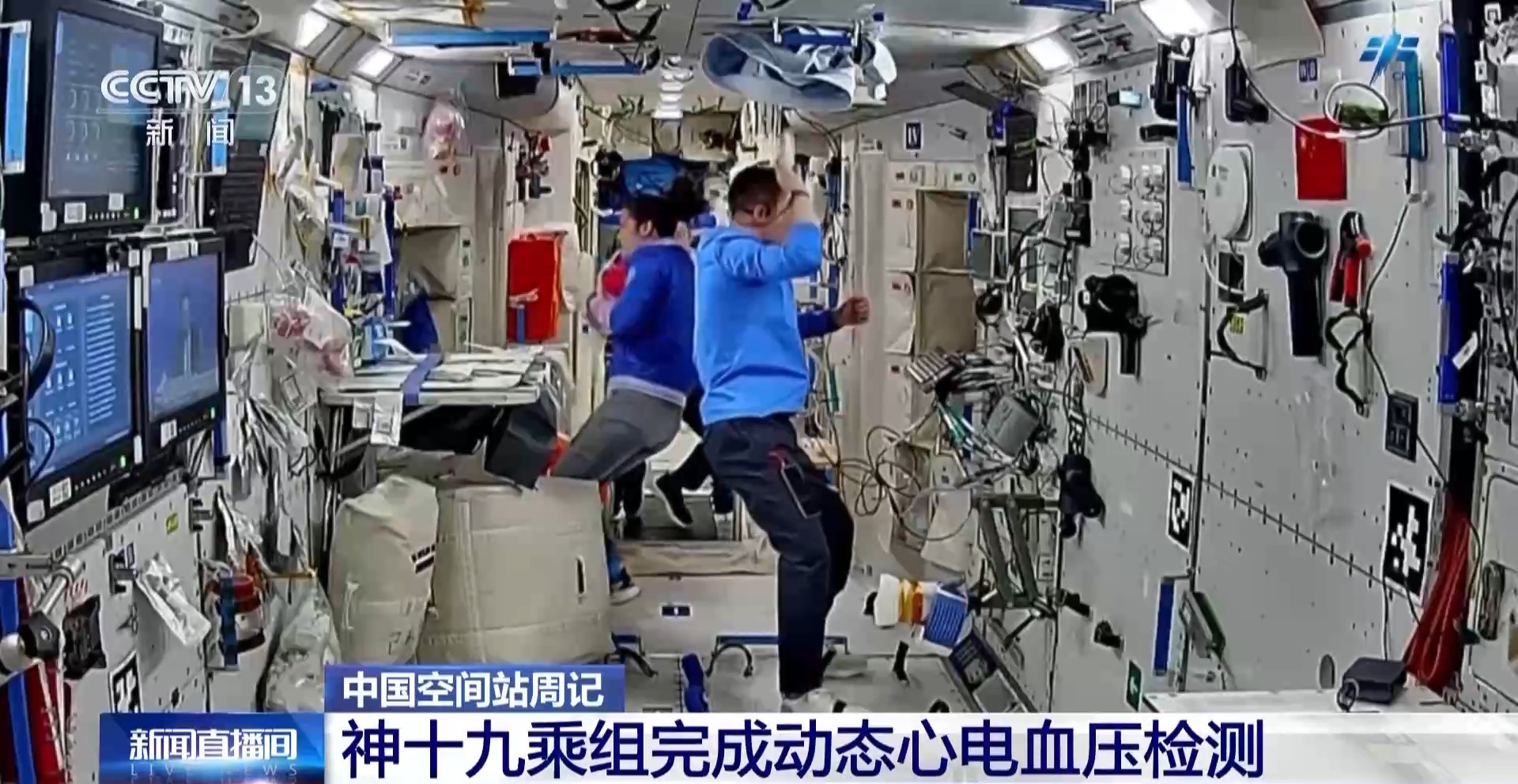 乘组按计划完成动态心电血压检测等医学检查,定期开展运动锻炼,进行失重防护,以更加饱满的精神面貌迎接各项任务。