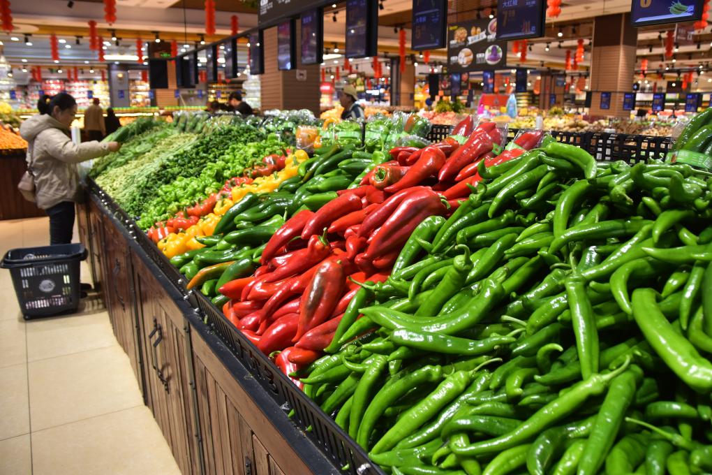 2025年2月9日,顾客在云南省蒙自市一超市选购蔬菜。新华社发(薛莹莹 摄)