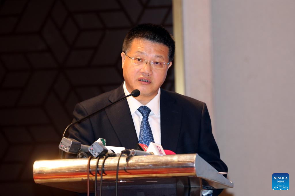 Chinese Ambassador to Bangladesh Yao Wen delivers a speech at an event to release the survey "National Image of China in Bangladesh," in Dhaka, Bangladesh, March 11, 2025.